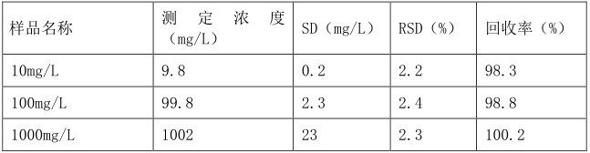 Xpert-TOC 测定含颗粒物的样品,完全满足EN 1484、ISO 8245方法,并且有极好的重复性和回收率,采用NPOC方法,五次测定的平准值均展现了良好的的复现性,回收率范围为98%-101%,重复性RSD<2.5%。